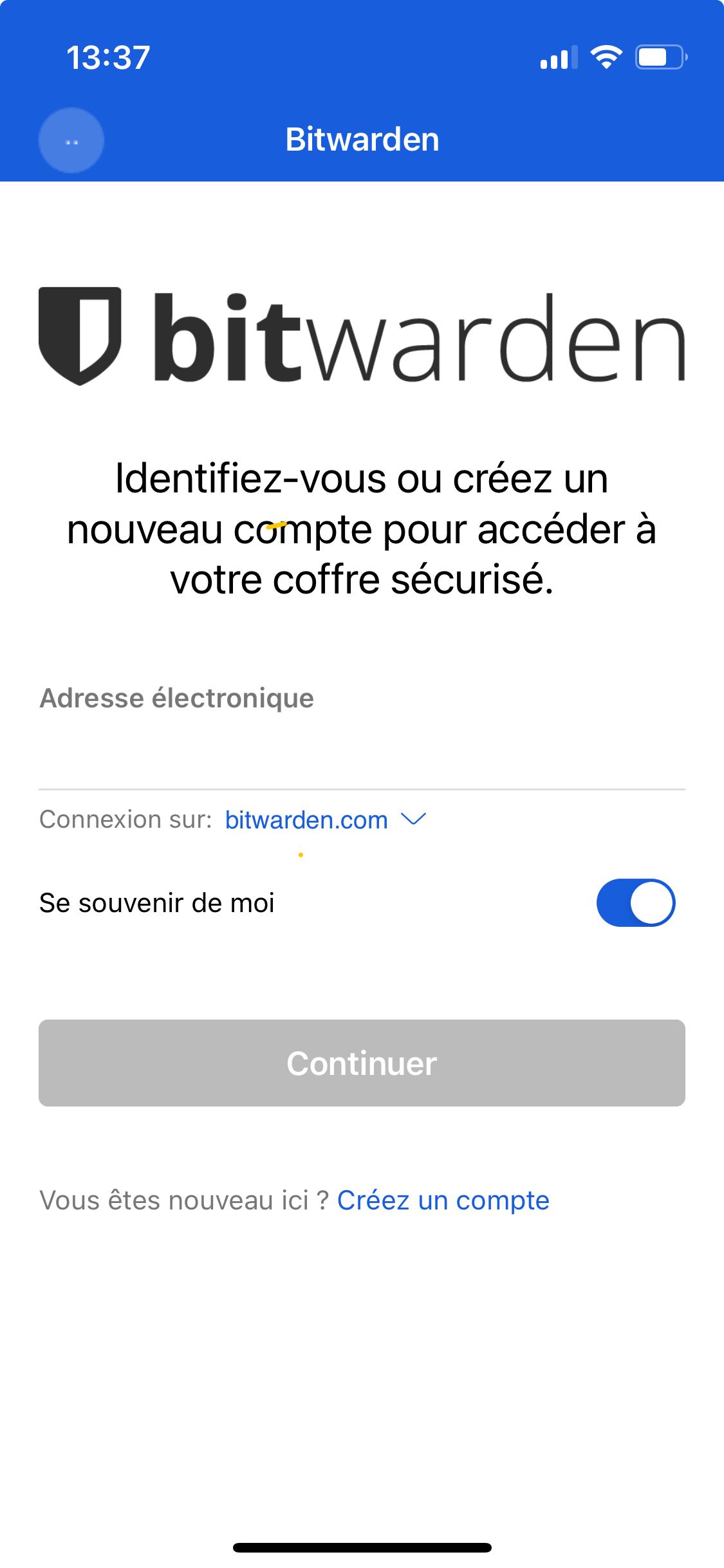 Téléchargez ici l'application Bitwarden sur le store d'application de votre téléphone ou tablette.