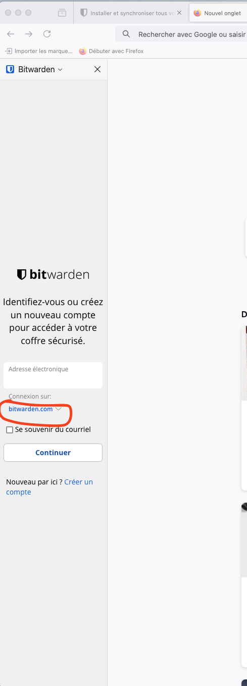 Une fois arrivé sur la page de connexion entrer vos identifiants (adresse mail/mot de passe maître)