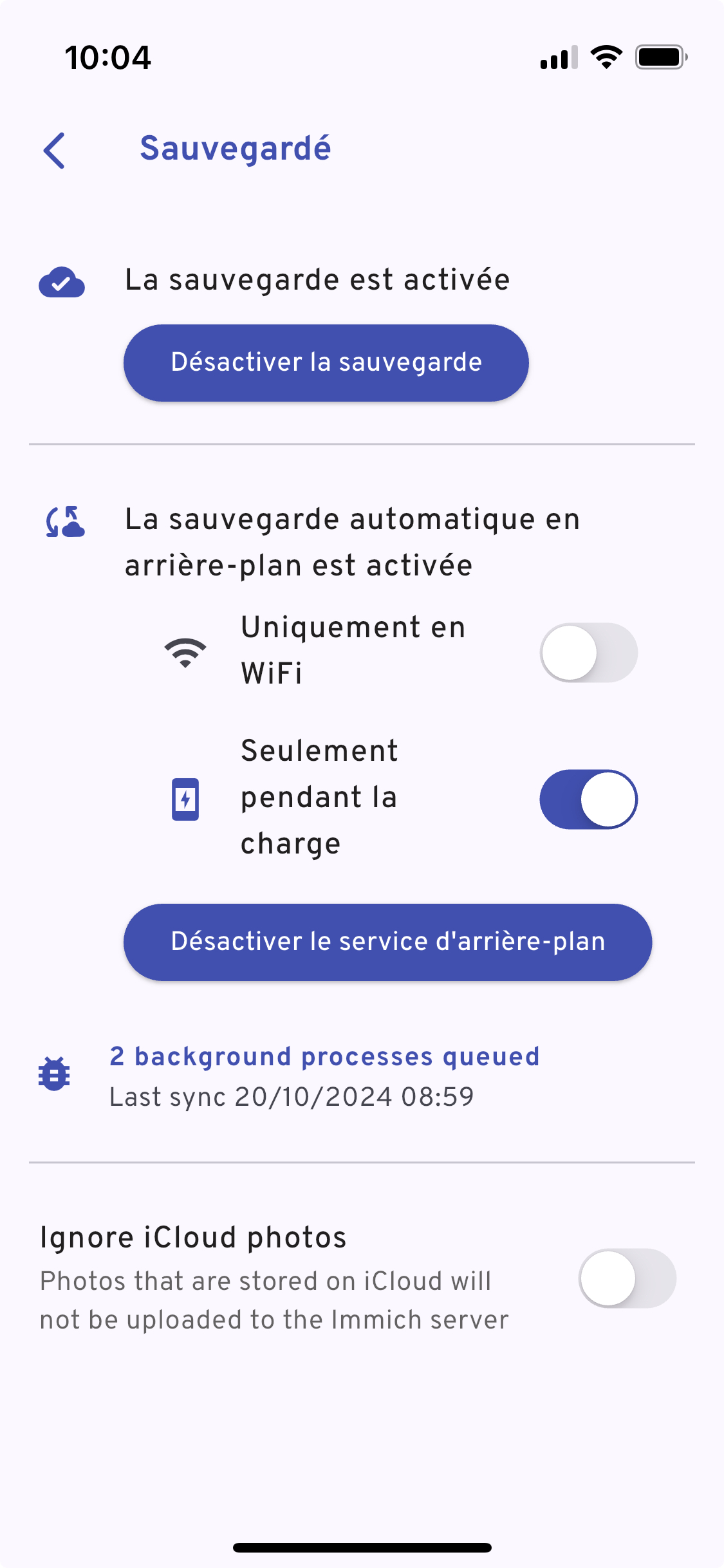 La première sauvegarde peut prendre du temps, il est préférable d'être connecté à un réseau wifi et d'avoir branché le chargeur de son téléphone.